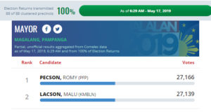 Pecson wins by 27 votes in Magalang