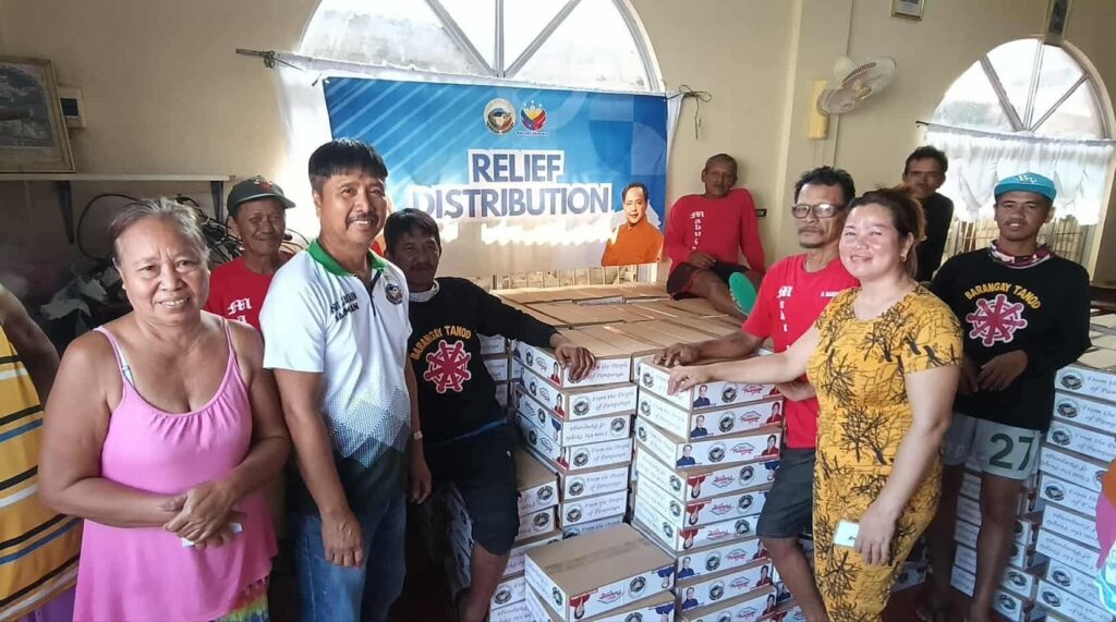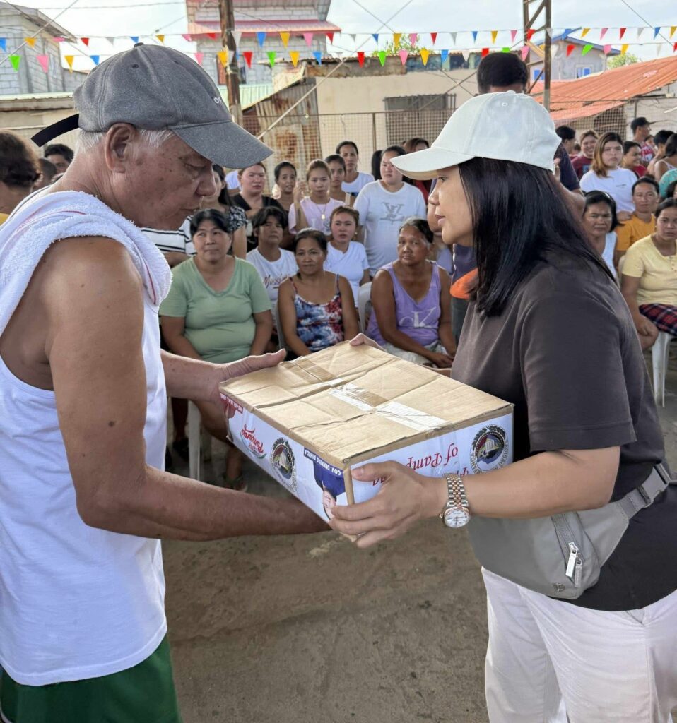 Vice Governor Pineda and board member Kaye Naguit personally led the distribution of relief packs, each containing five kilograms of rice, five cans of sardines, and five cans of corned beef.
