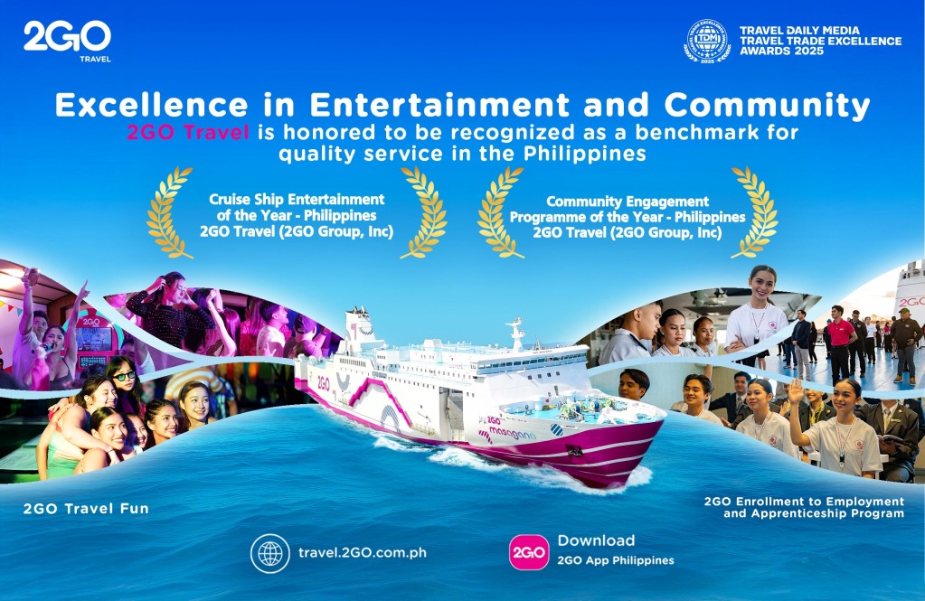 Manila, Philippines, 16 December 2025 – 2GO Travel, the country’s premier sea travel operator, received two major recognitions at the 2025 TDM Travel Trade Excellence Awards – Asia. The company was awarded with the Community Engagement Programme of the Year – Philippines and Cruise Ship Entertainment of the Year – Philippines honors.