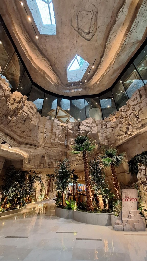 Stepping into the new wing feels like entering a world drawn from a painter’s palette — earthy sandstone hues, textures of carved stone, streams of light that fall like sun through canyon walls. The interiors are not loud; instead, they invite slow appreciation. Tiered pathways open into generous spaces, ceilings stretch upward, and lighting casts soft glows around the gaming areas.