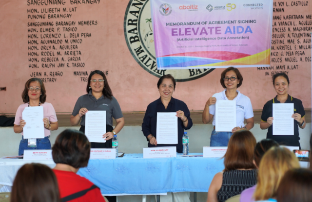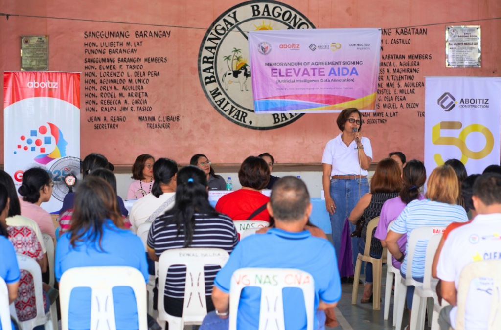 Aboitiz Construction and Aboitiz Foundation, Inc., in partnership with Connected Women and the local government of Barangay Bagong Pook, officially launched the Elevate AIDA (Artificial Intelligence Data Annotation) Program through a Memorandum of Agreement (MOA) signing ceremony held on October 21, 2025, in Brgy. Bagong Pook, Malvar, Batangas.