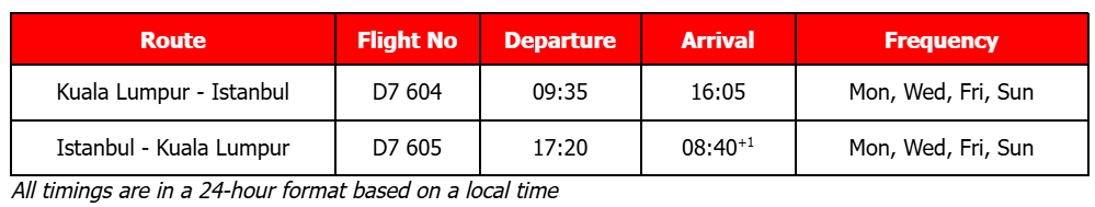 AAX flies to Istanbul with four times weekly flights, offering more than 150,000 seats annually with competitive fares from RM749* or USD205* all-in one-way. Promotional fares are available for booking from today until 30 November 2025, for the travel period between now and 14 September 2026 on airasia.com and the AirAsia MOVE app.