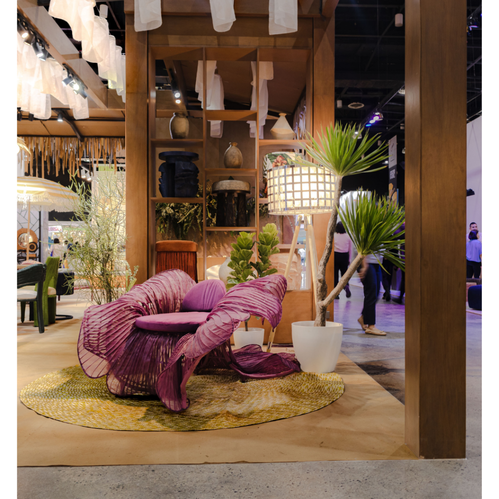 Crowd favorites included the Rosas Chair, a Katha Award finalist admired for its sculpted petal form, and the one-of-a-kind Sun Loungers, which featured woven framing and all-weather fabric that perfectly captured the spirit of tropical living.