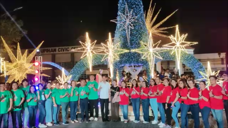 DINALUPIHAN, Bataan – Inilawan  na Miyerkules ng gabi ang magagandang Christmas décor sa plaza ng Dinalupihan, Bataan na tampok ang mataas at makulay  na Christmas tree na nasa ilalim ang malaki at magandang belen.