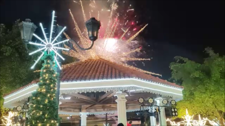 Pagkatapos ng “panuluyan”, bigla na lamang nagliwanag ang madilim na plaza at tumambad ang iba-ibang palamuting Pamasko tulad ng malalaking parol at iba pang Christmas décor.