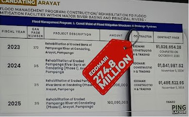 While it has been the subject of sporadic reports in the local media as early as 2023 and getting full blown coverage in August 2024 when it sustained considerable damage at the onslaught of Super Typhoon Carina and the southwest monsoon, it was in August 2025 that the Candating flood control project was inflicted upon the national consciousness with Sen. Ping Lacson naming it as “the face of failed flood control projects,” evidenced by the year-after-year program for its rehabilitation uniformly pegged at P100 million, its contract price as uniformly tagged at P91 million, its contracts as uniformly awarded to Eddmari Construction and Trading Corp. from the original P20 million for the project in 2018, ballooning to over P274.8 million in repeated repairs, and still, as uniformly, collapsing.