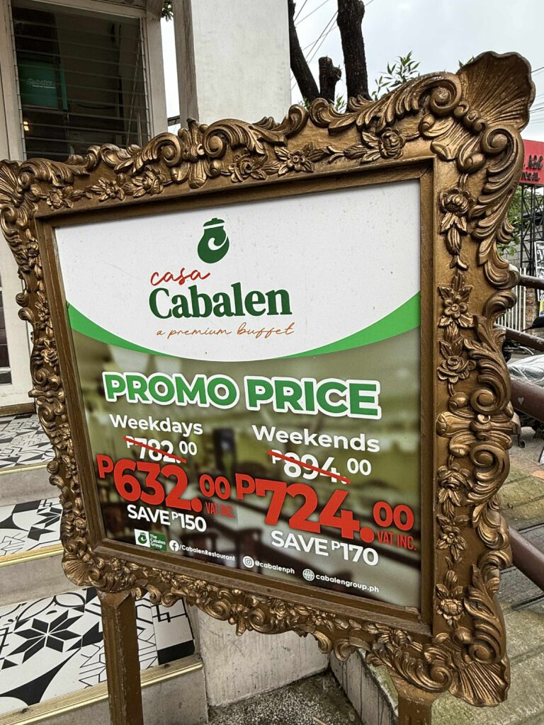 Dining hours run from 11:00 AM to 3:00 PM and from 5:00 PM to 9:00 PM, with unlimited buffet promo rates at ₱632 on weekdays and ₱724 on weekends. Located at Villa Barosa Phase 2A corner JASA, Dolores, City of San Fernando, Pampanga, Casa Cabalen Plus proudly welcomes everyone to taste tradition in its most vibrant form.