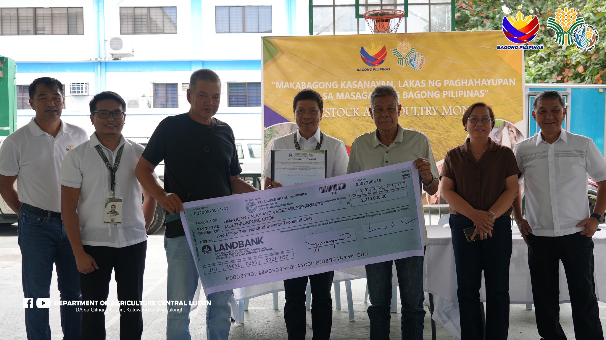 The beneficiaries include Nasingkong Kawayan Kiling-Batilao Integrated Farmers Association and Bataan Farmers Agriculture Cooperative from Bataan; Zambales Competitive Farmers Association and San Esteban Agri Producers Association Inc. from Zambales; and Lacmit Farmers Agriculture Cooperative, Talimundok Farmers Association, Agustinian Farmers Association of Candaba Inc., and San Roque Farmers and Livestock Raisers Association Inc. from Pampanga.