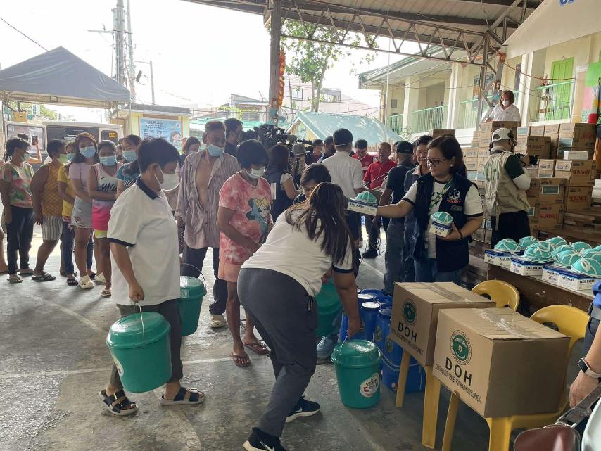 Dala ng DOH ang mga kahon ng hygiene kit na naglalaman ng timba, tubig, sabon, twalya, tooth brush, tooth paste at shampoo.