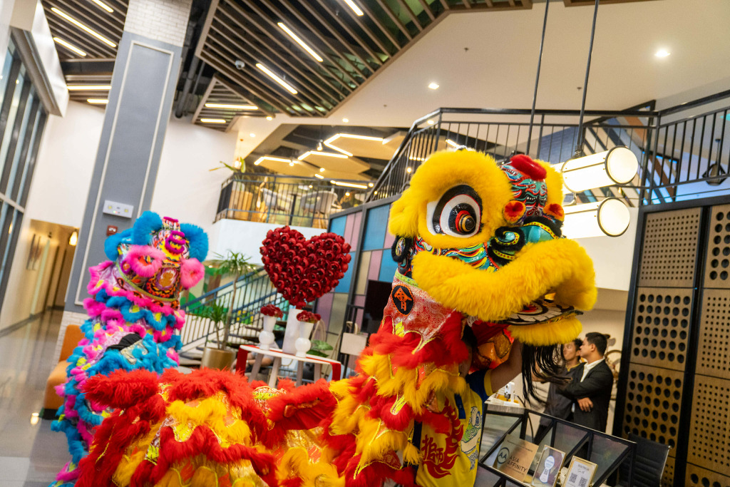 Festive cheers echoed as the troupe energized diners at McDonald’s before heading to ClockTower Square, where red and gold hues symbolized luck and renewal.