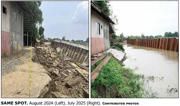 ARAYAT, Pampanga – Collapsed in August 2024, its rehabilitation far from completed when inundated – at the point of complete collapse – by the monsoons in July-August 2025; named by Sen. Ping Lacson as the “face of failed flood control projects” immediately before the Senate investigations; jointly investigated in September 2025 by the Independent Commission for Infrastructure and Public Works Secretary Vince Dizon, who did not contain his anger over “the patently substandard” construction and extracted from the project contractor, Edgardo Sagum, proprietor of Eddmari Construction and Trading Corp., the vow to repair the damage soonest and ablest – ONLY TO COLLAPSE AGAIN THIS FRIDAY, JAN. 23, damaging at least 16 homes and endangering more along the downstream of Pampanga River.