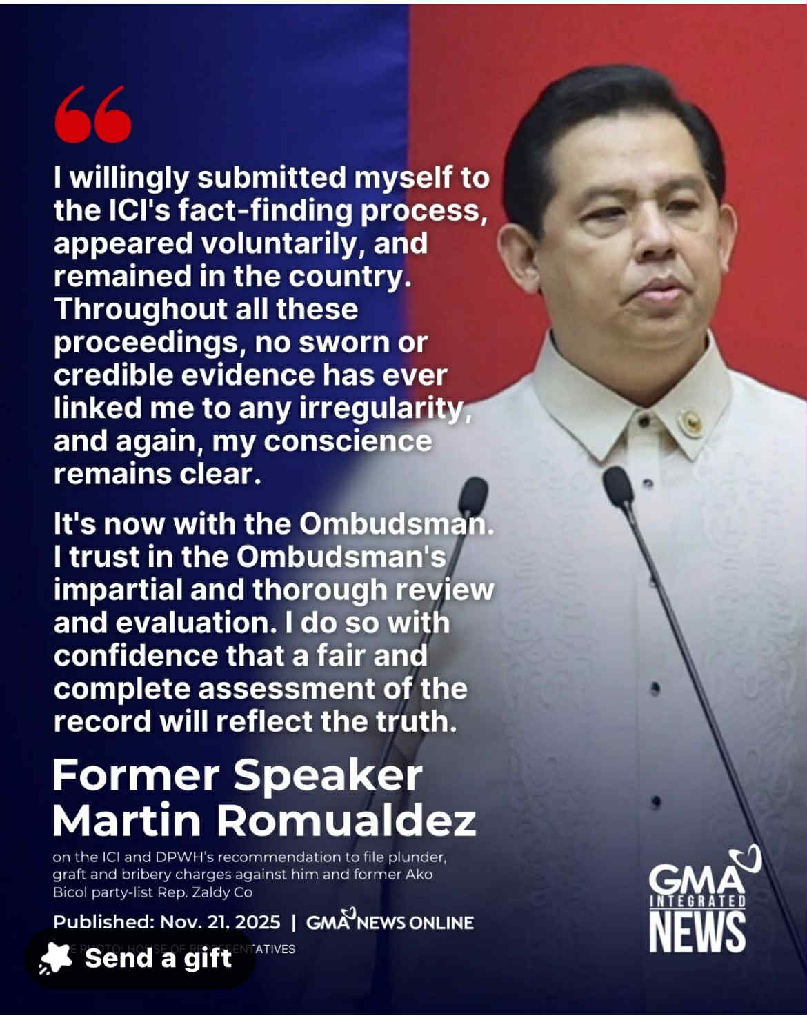 Sa ganitong pahayag, tila sinusubukang ilatag ni Romualdez sa publiko—at sa Ombudsman mismo—ang isang naratibo: na wala siyang kinalaman, at ang anumang resulta na taliwas doon ay taliwas din sa “katarungan.”