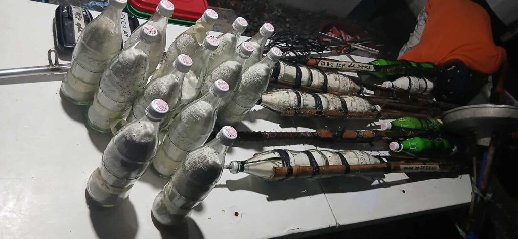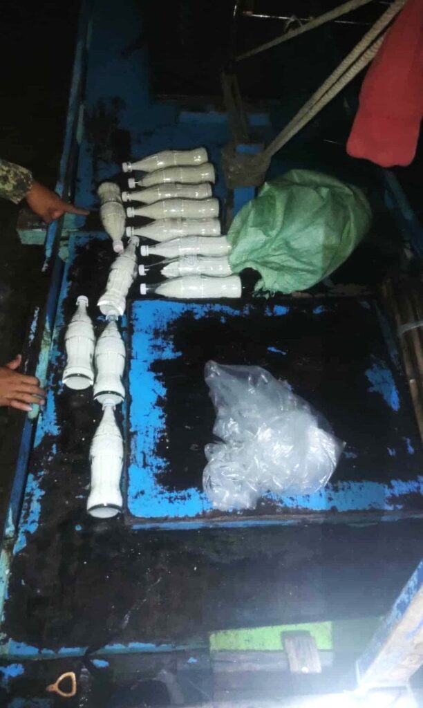 Nakumpiska sa suspek ang isang bangkang de motor na nagkakahalaga ng P500,000; limang improvised explosives na may blasting caps na along kilala na “bung-bung” na nagkakahalaga ng P10,000; 13 piraso ng 750ml na bote ng hinihinalang ammonium na nagkakahalaga ng P7,000; isang set ng compressor tank na nagkakahalaga ng P3,000; dalawang piraso ng fish finder na nagkakahalaga ng P80,000; isang set ng yellow green compressor hose na nagkakahalaga ng P2,000; at 70 kilos ng ibat ibang klase ng isda na huli sa dinamita na nagkakahalaga ng P7,000.