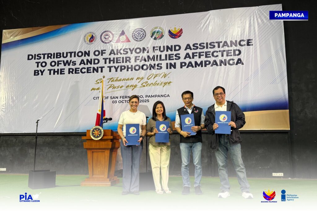 CITY OF SAN FERNANDO – “Bilang tugon sa mga naging pinsala ng mga nagdaang habagat at bagyo, magbibigay ng tulong ang DMW sa pamamagitan nitong Aksyon Fund sa 3,000 benepisyaryo ng tig-P5,000.”