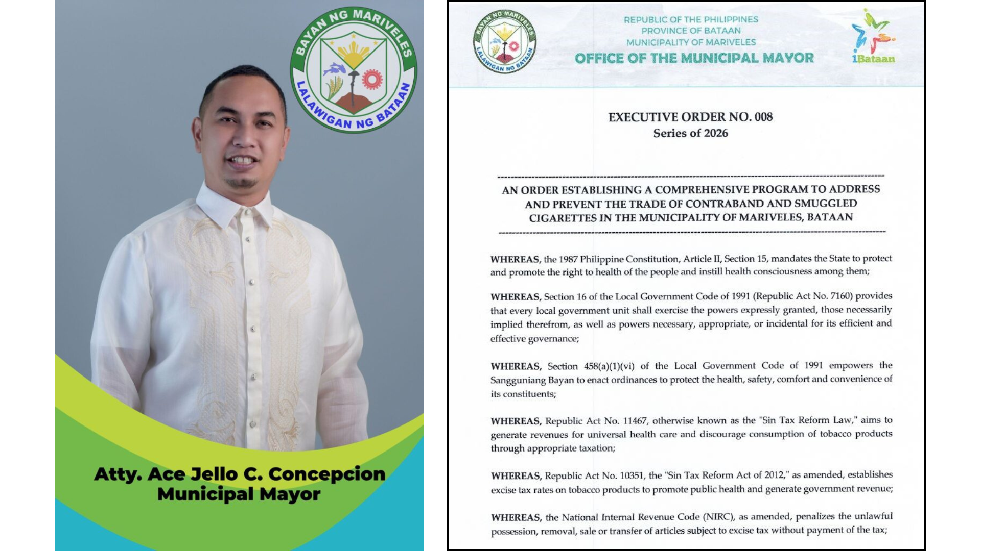 MARIVELES, Bataan – The Municipality of Mariveles has issued an Executive Order establishing a coordinated local program to address and prevent the trade of contraband and illicit cigarettes, formalizing a unified enforcement and monitoring framework within the municipality.