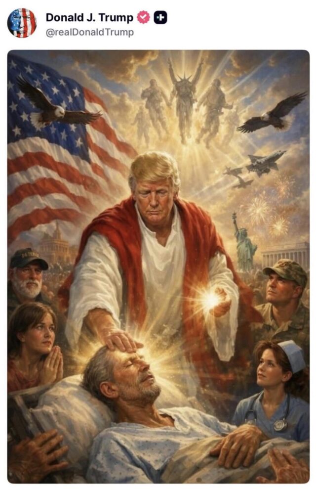 The image—presented as a post by Donald Trump—is not subtle. It is a carefully constructed piece of political-religious symbolism, and every element contributes to a larger narrative. Let me walk through what it is communicating.