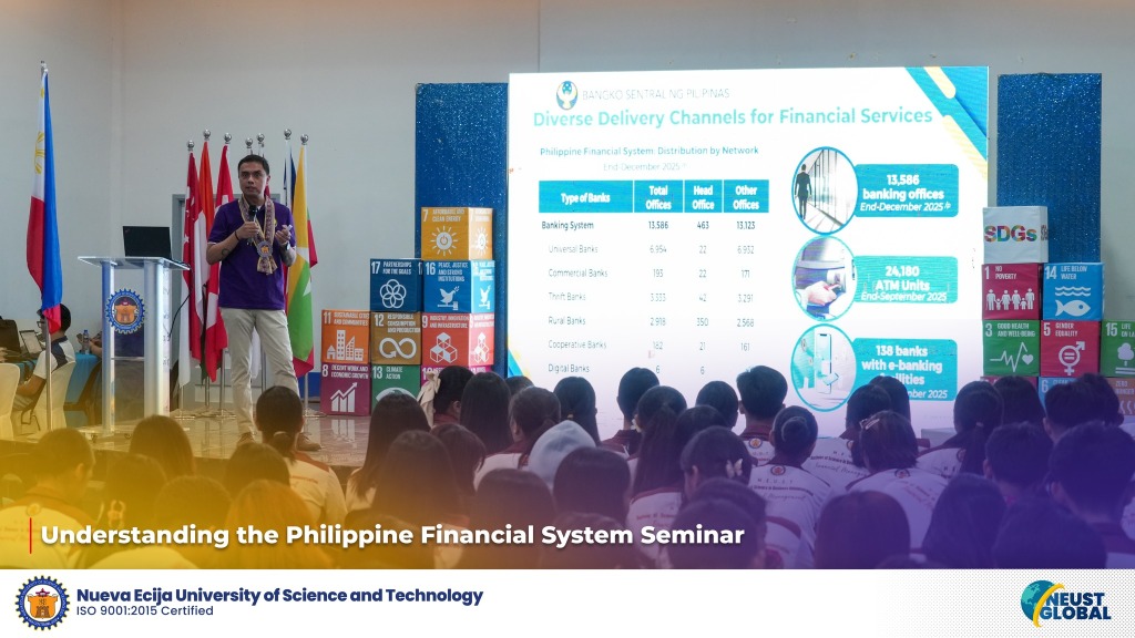 This partnership delivered a hybrid seminar titled “Understanding the Philippine Financial System” at NEUST Sumacab Campus’ Nieto Hall, organized by the university’s College of Management and Business Technology together with its Human Resource Management Office (HRMO) Learning and Development Unit.