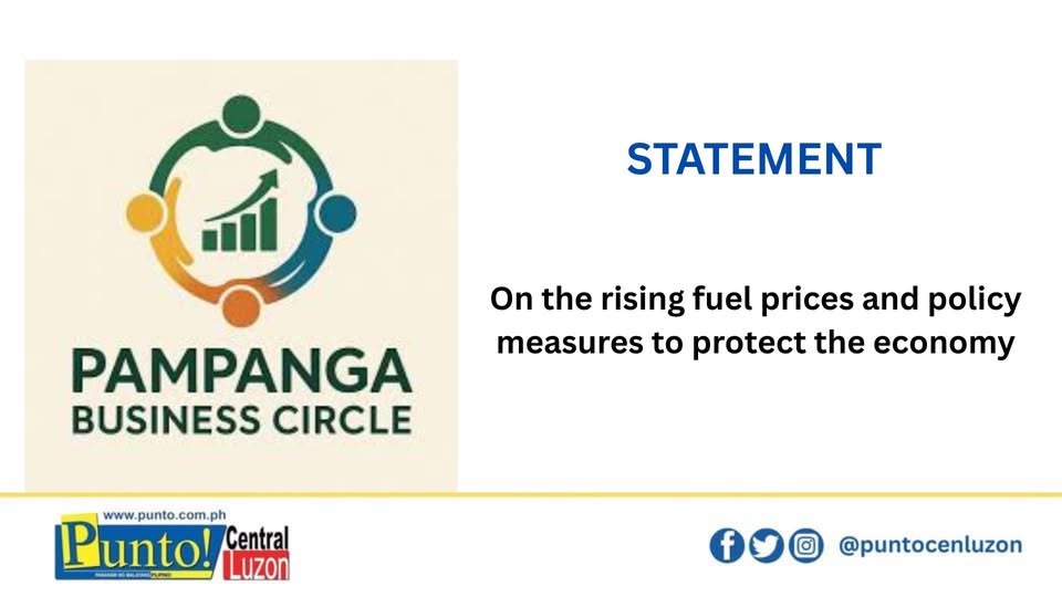 THE PAMPANGA Business Circle (PBC) expresses concern over the continuing rise in global oil prices, which is placing increasing pressure on Filipino households, farmers, transport operators, and businesses. As an oil-import-dependent country, the Philippines remains highly vulnerable to global supply disruptions and geopolitical tensions that can significantly drive up fuel costs.