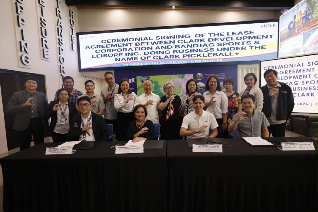 CLARK FREEPORT — Pickleball and other racket sport enthusiasts will soon have a dedicated venue in Clark with the signing of a P12-million lease agreement between the Clark Development Corp. and Bandjag Sports & Leisure Inc. to redevelop a former warehouse into Clark Pickleball+, a purpose-built pickleball and paddle sports facility.