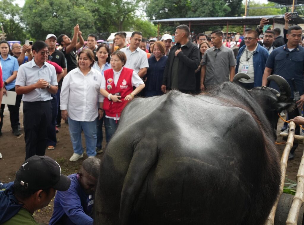 With Gov. Lilia “Nanay” Pineda, Social Welfare Secretary Rex Gatchalian, Nanay Partylist Rep. Florabel Yatco, and former president Pampanga 2nd District Rep. Gloria Macapagal Arroyo, the president handed over 60 heads of carabaos and 30 garetas (carabao-drawn carts) to the Aeta community, where 127 Aetas were reintegrated through the DSWD’s Pag-abot Program.