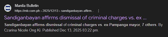 Thus, the Sandiganbayan affirmed its ruling dismissing graft and malversation charges against former Mexico Mayor Teddy C. Tumang and seven other officials for alleged irregular procurement of construction materials for road repairs in 2009 and 2010.