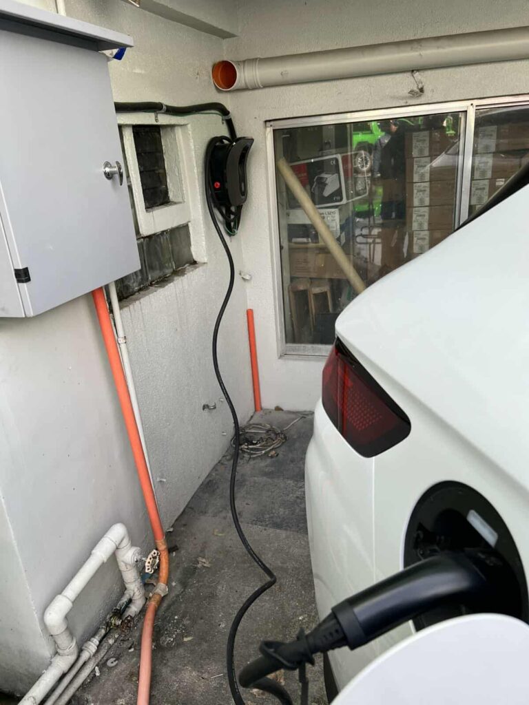 The free charging stations are available during regular office hours, and Sfelapco staff are ready to assist customers who need help operating the chargers. Signs and safety reminders are also posted near the charging area.