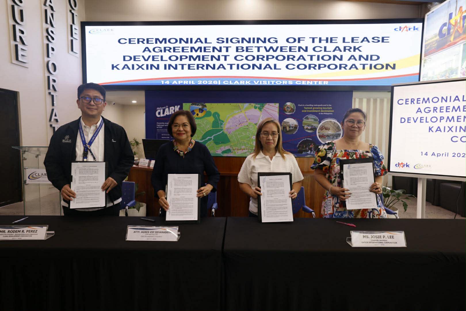 Kaixin International Corp. (KIC) formalized a two-year lease extension with CDC during a signing ceremony on April 14 at the Clark Visitors Center. The agreement was signed by CDC president and CEO Atty. Agnes VST Devanadera and KIC corporate secretary Josie Lee.