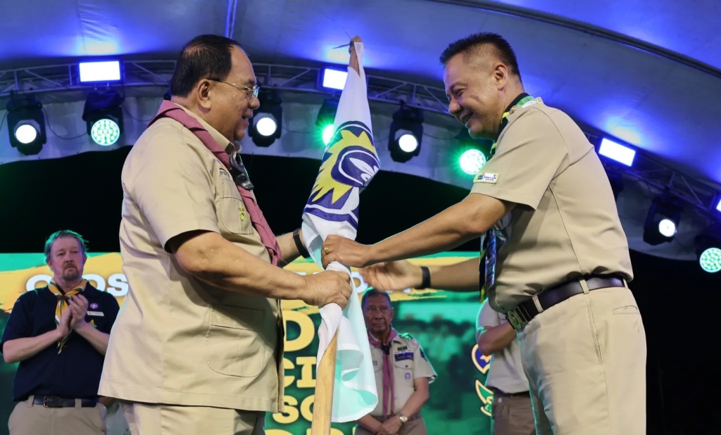 As jamboree chief, Ebdane turned over the APRSJ flag to the head of the Thailand scouts delegation at the camp closing ceremonies last Saturday.