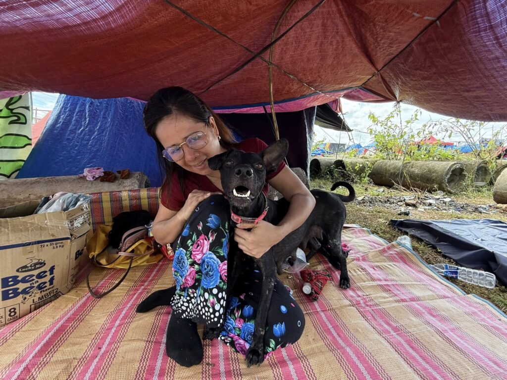 “We had to rush and pick up what we had in order to survive,” Maricel told me, her hands trembling slightly as she recalled the night the earth turned violent. Beside her, her loyal dog Molly lay quietly, as if understanding every word.