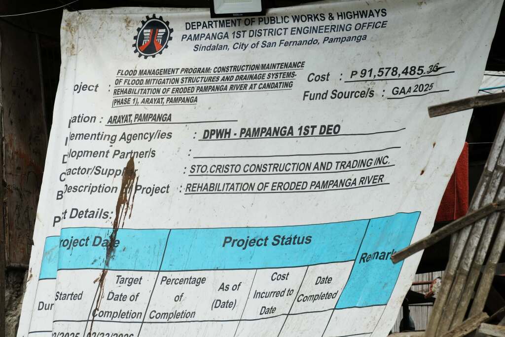 All too obvious, if not telling, amid that field of devastation in Candating, Arayat, Pampanga visited by DPWH Secretary Vince Dizon on Jan. 30 is this soiled but unfilled-up DPWH project billboard identifying a “Sto. Cristo Construction & Trading Inc.” as contractor/supplier for the “rehabilitation of eroded Pampanga River (sic)” started on May 22, 2025 with target date of completion on Feb. 23, 2026 at the cost of P91,578,485.36.